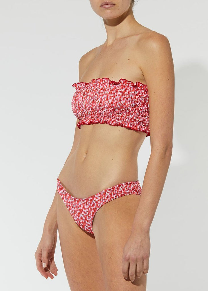 Featured in our Ditsy Floral smocking fabrication, the new Indigo Top is one of our all time favorites. This feminine, bandeau style top is designed with removable straps for additional support. Mix and match with the Rachel Bottom for minimal coverage or pair with the coordinating Indigo bottoms.