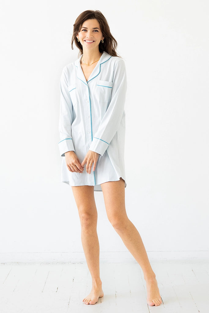 SALUA Classic Luxury Sleep Shirt in Brushed Pima Cotton