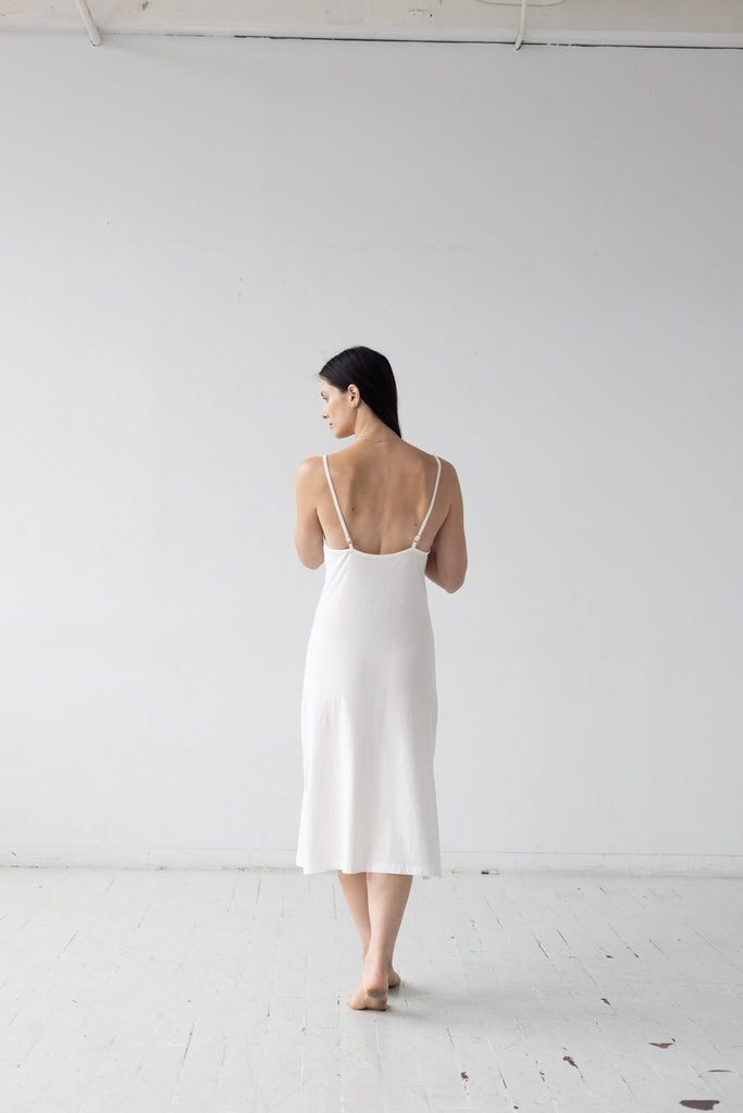This ultra-soft, long, bias-cut nightgown is crafted from brushed Pima cotton, known for its luxurious texture and gentle touch against the skin. The gown features delicate spaghetti straps that provide a barely-there feel. Its bias cut allows it to gracefully skim the body's natural curves, adding a fluid, flattering silhouette that moves elegantly. The brushed finish on the Pima cotton gives it an extra layer of warmth and softness, making it perfect for cozy, restful nights.
