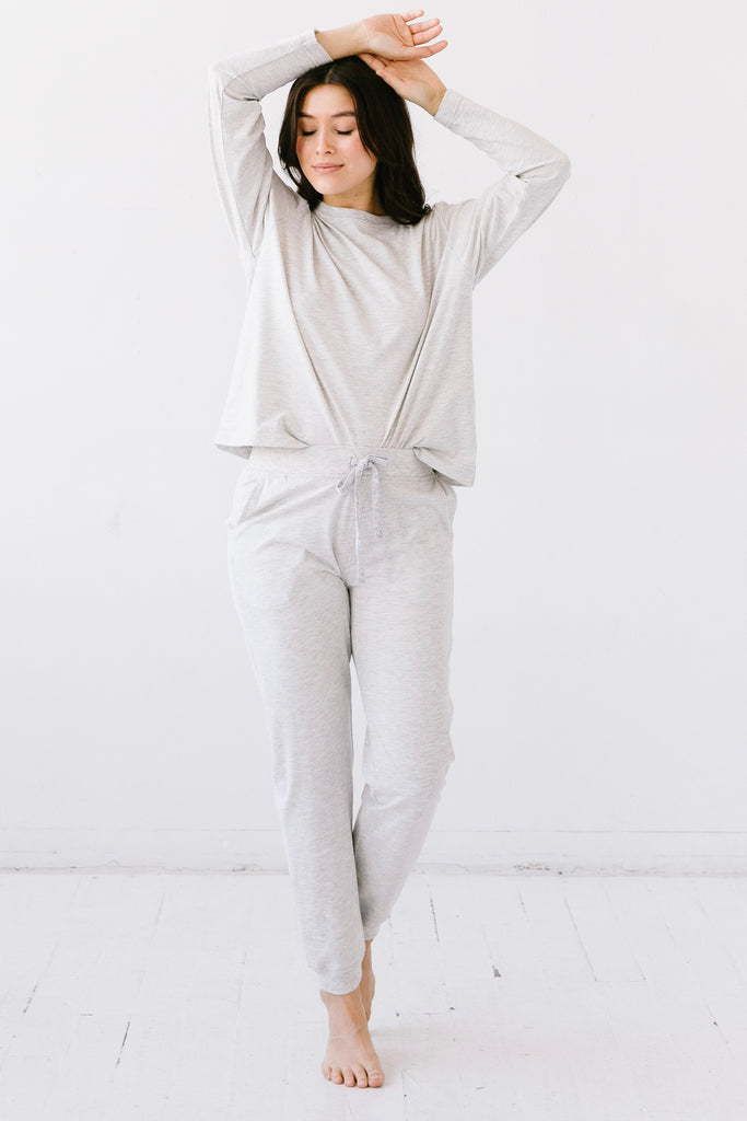 This ultra comfortable long sleeve tee is a great basic with an upscale minimalist look. Pair this top with our Pima Cotton Joggers or your favorite jeans. This top features a crew neck, full length sleeves, and a slightly oversized fit.