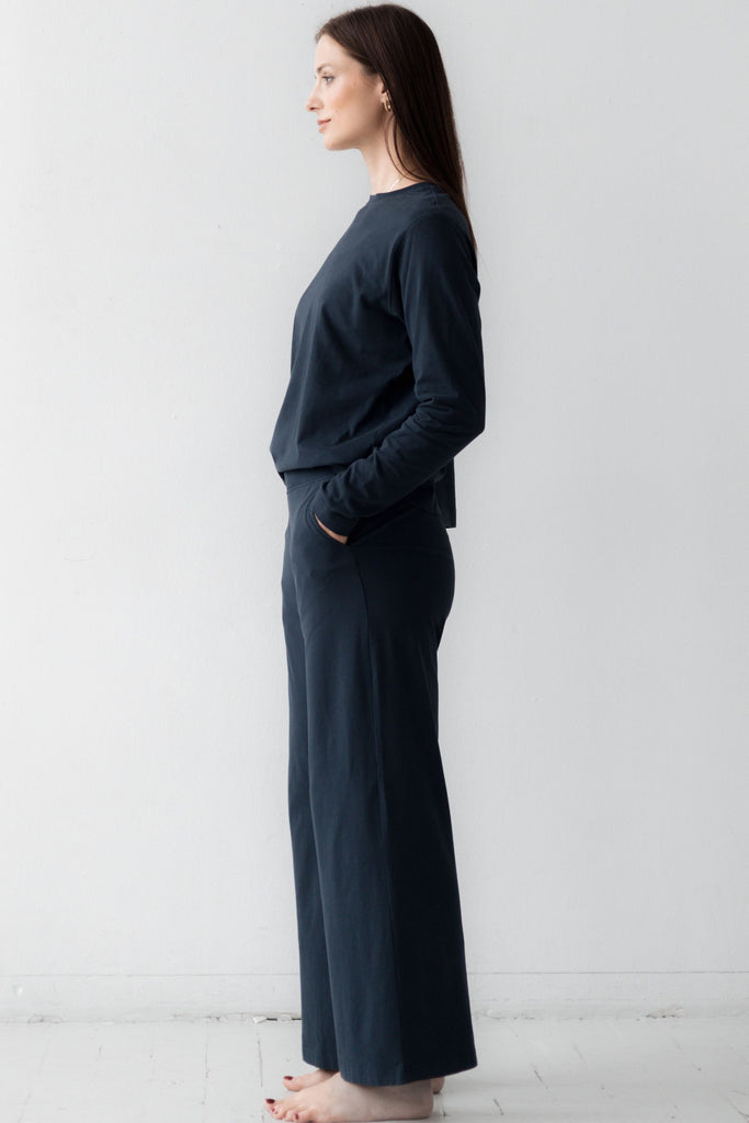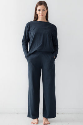 This ultra comfortable long sleeve tee is a great basic with an upscale minimalist look. Pair this top with our Pima Cotton Joggers or your favorite jeans. This top features a crew neck, full length sleeves, and a slightly oversized fit.