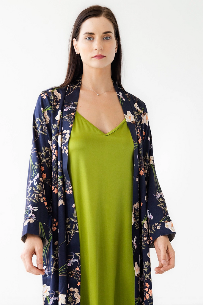 Unwind and relax in SALUA's floral silk robe made with 90% silk and 10% spandex for ease and comfort. Its beautiful design will be a great addition to your wardrobe and provide you with a luxurious staple piece.