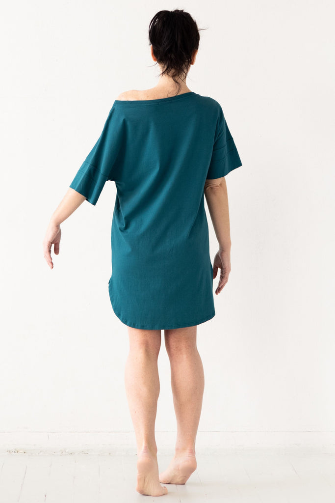 Not only is this 100% Pima Cotton sleep shirt terribly cute, it can double as a bathing suit cover up. Barely there high/low hem keeps you covered in all the right places. I suggest rolling the sleeves and wearing it cold shoulder style. Very flirty!