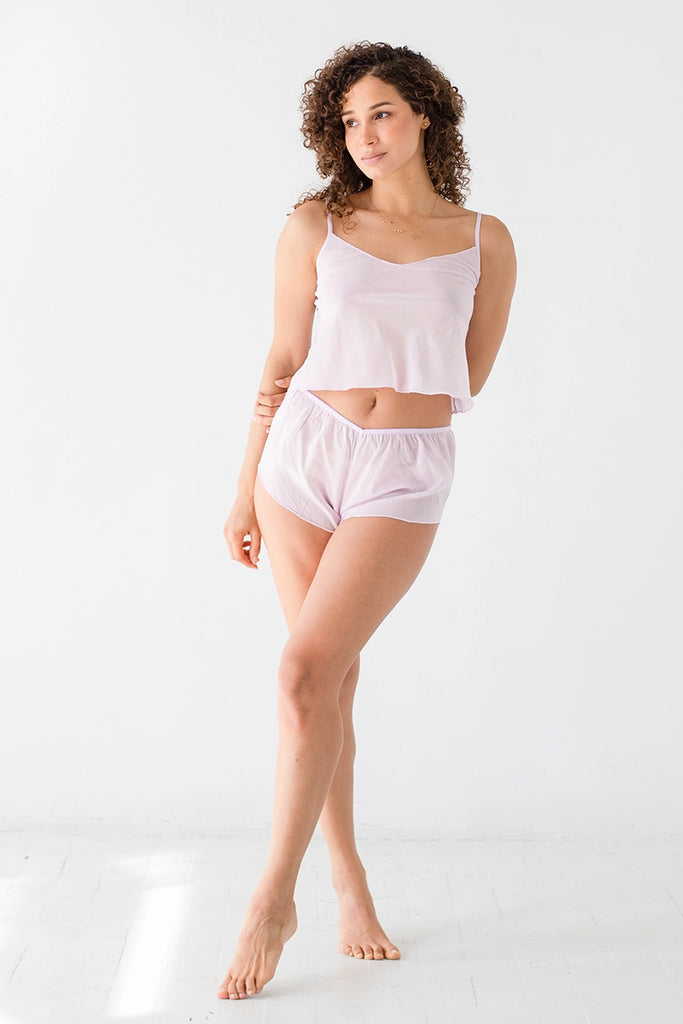 This Crop Top is made of a cotton silk blend and is super a flattering top to wear to sleep or to lounge in. Its sheer breathable fabric comes in many colors.